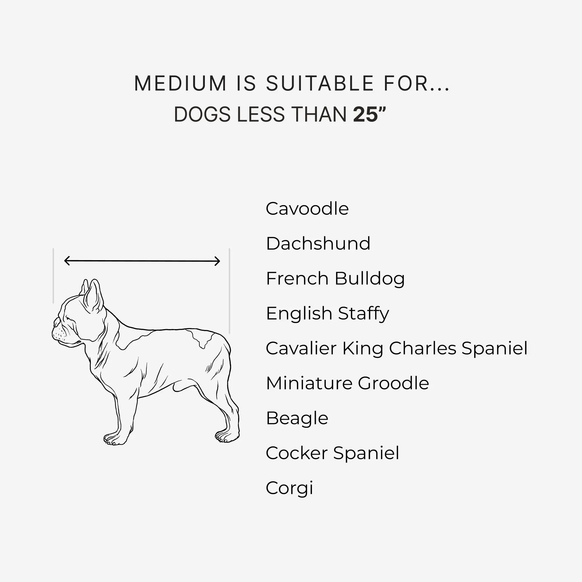 The Medium Barney Bed is designed for medium-sized dogs under 25" from nose to base of tail - perfect for breeds like Cocker Spaniels, French Bulldogs, Cavoodles and Beagles. Ideal for dogs who love to stretch out and curl up, this bed gives them the comfort they deserve.