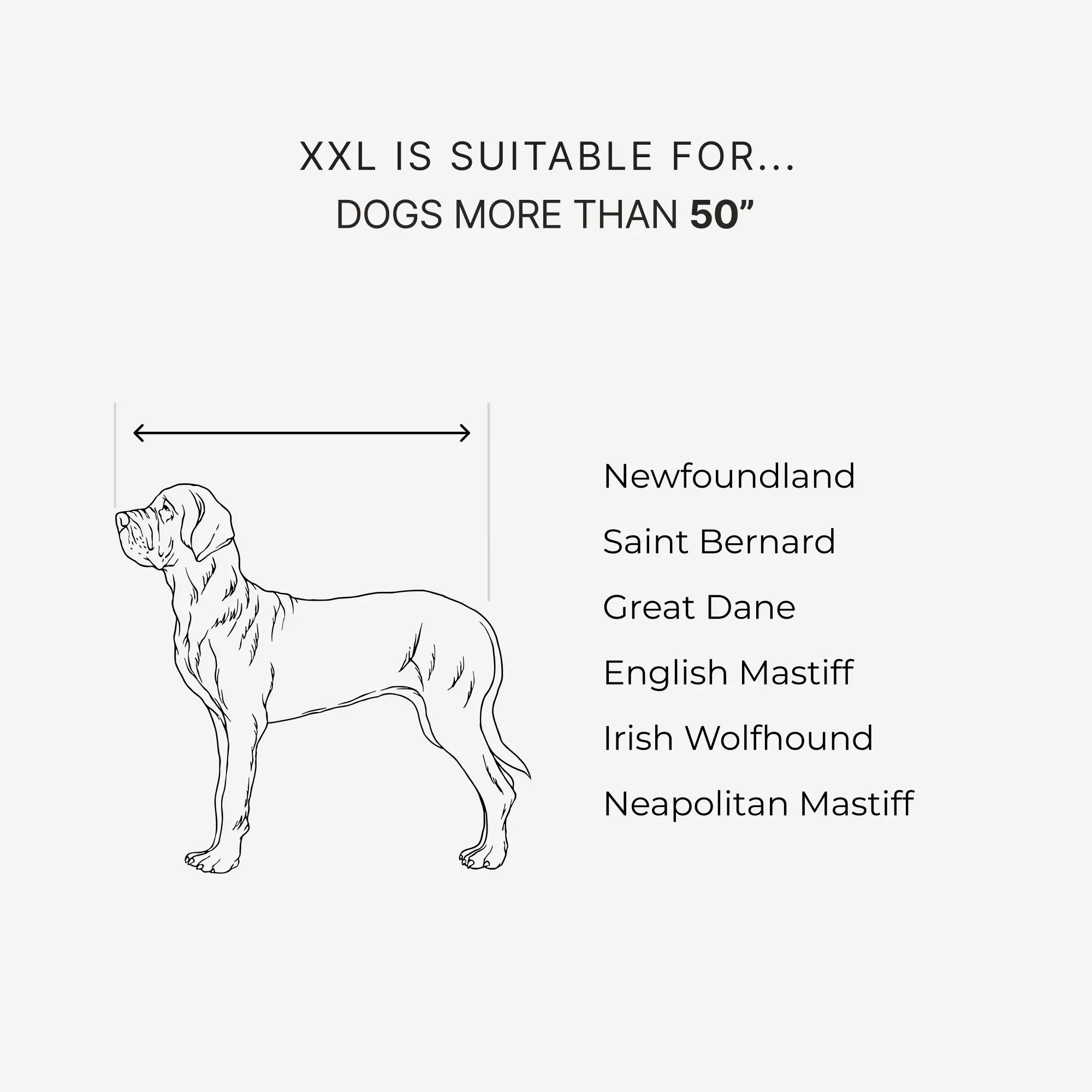 The Epic XXL Barney Bed is the world’s largest dog bed, crafted to provide exceptional orthopaedic support for your gentle giants. Designed for dogs over 50", like Great Danes, Saint Bernards, Newfoundlands, and Mastiffs - it’s built to hold their weight without sagging, giving them plenty of space to fully stretch out and even enough room for you to join them for a cuddle.
