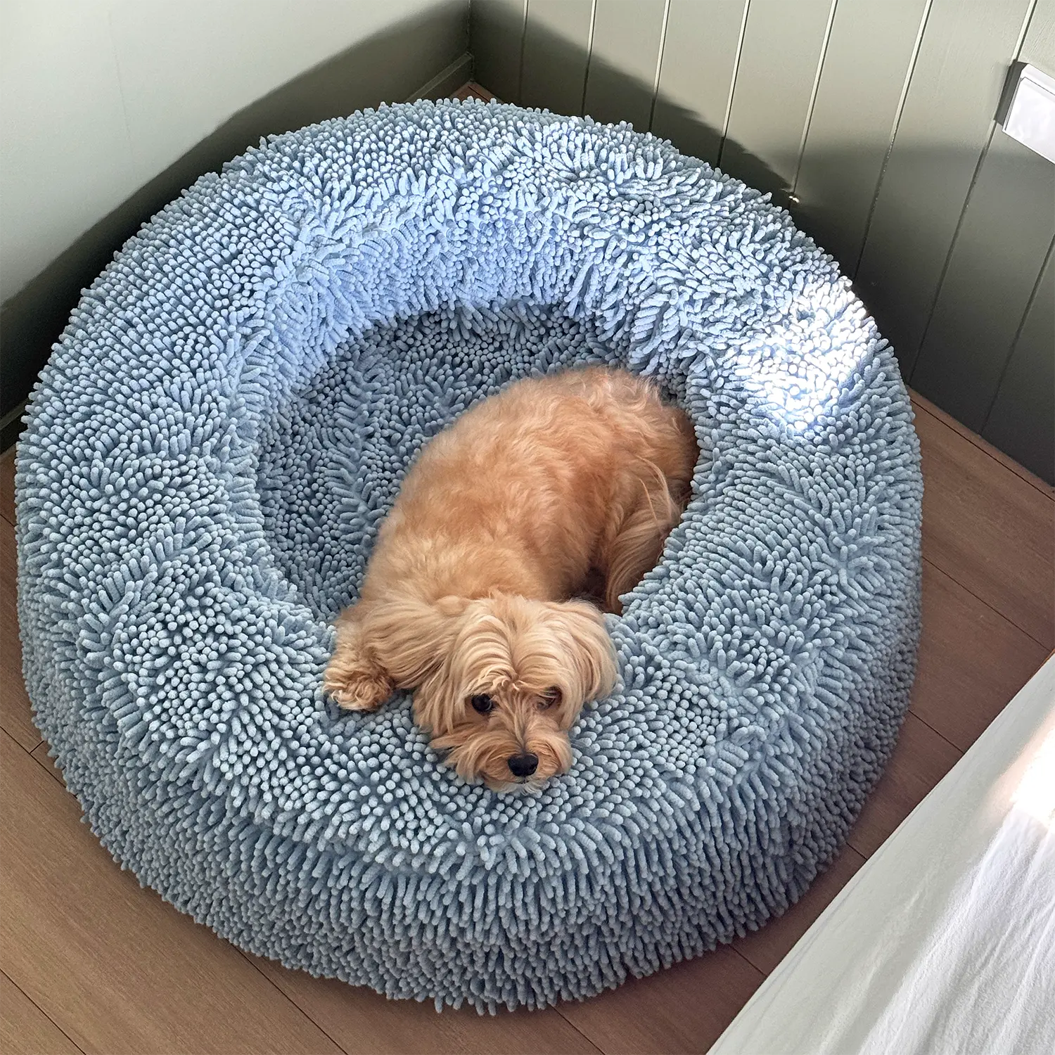 The world’s first ever [wet dog] - drying dog bed! Featuring a super absorbent and funky shaggy outer layer to soak up all the moisture away from your dog's skin and an inner microfiber towel lining to keep the BarneyCurl Bed dry.