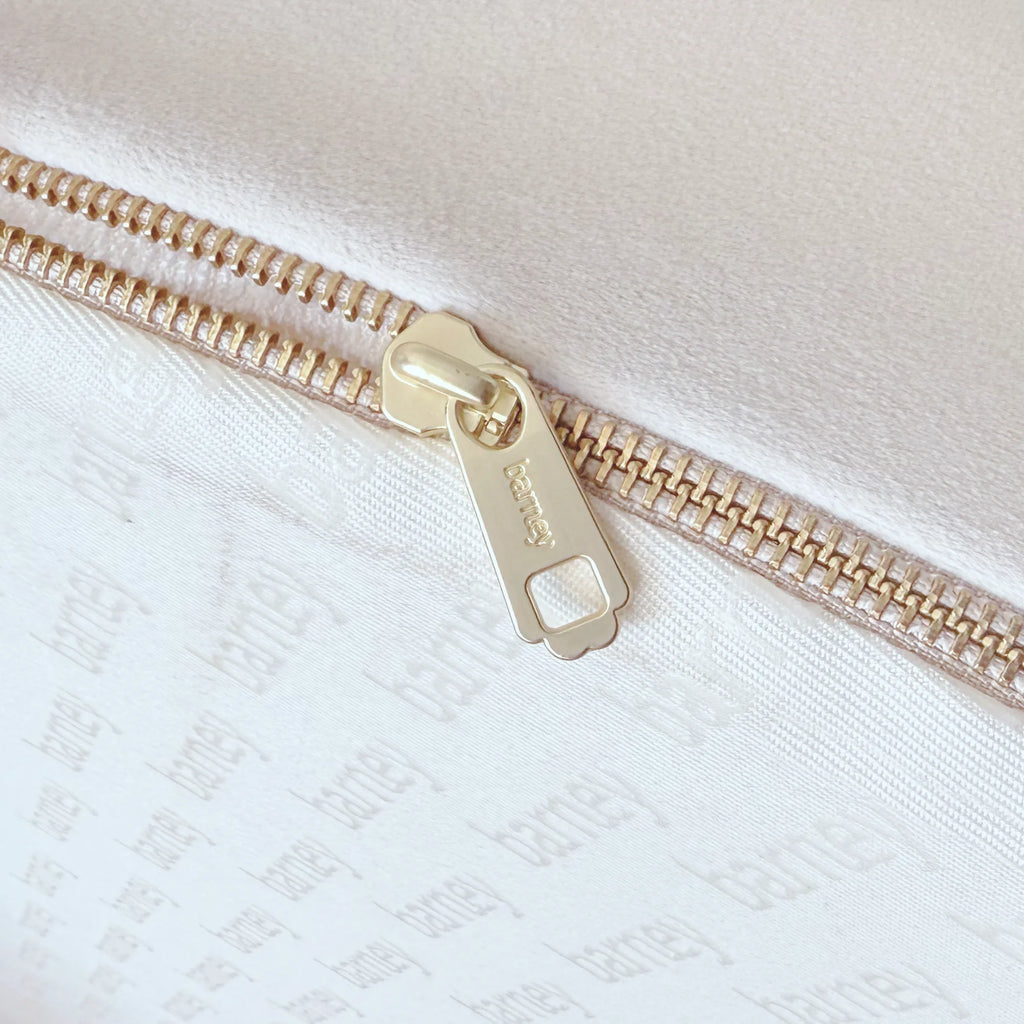 The BarneyCurl cover unzips like a dream with the YKK zipper and is machine washable. Wash at a medium temperature with a mild detergent and hang to dry. Wash with similar colors. Do not use bleach or any harsh chemicals. Do not wash the foam inserts, as they are already protected inside the waterproof lining. Simply wipe them with a wet cloth and mild detergent. See our Care & Washing page for a video that shows how to remove and wash the covers, and reassemble the BarneyCurl Bed.