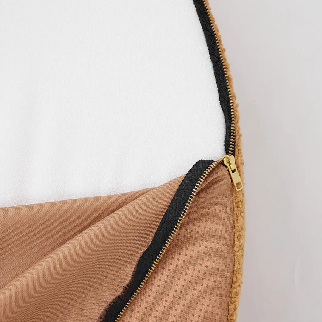 The BarneyCurl cover is made from our signature Barney Teddy fabric which is not only beautiful but also practical for dog use and regular washing. The cover zips off your BarneyCurl bed for easy cover change and washing. Available in three colorways Matcha, Golden Teddy and Rice Pudding.