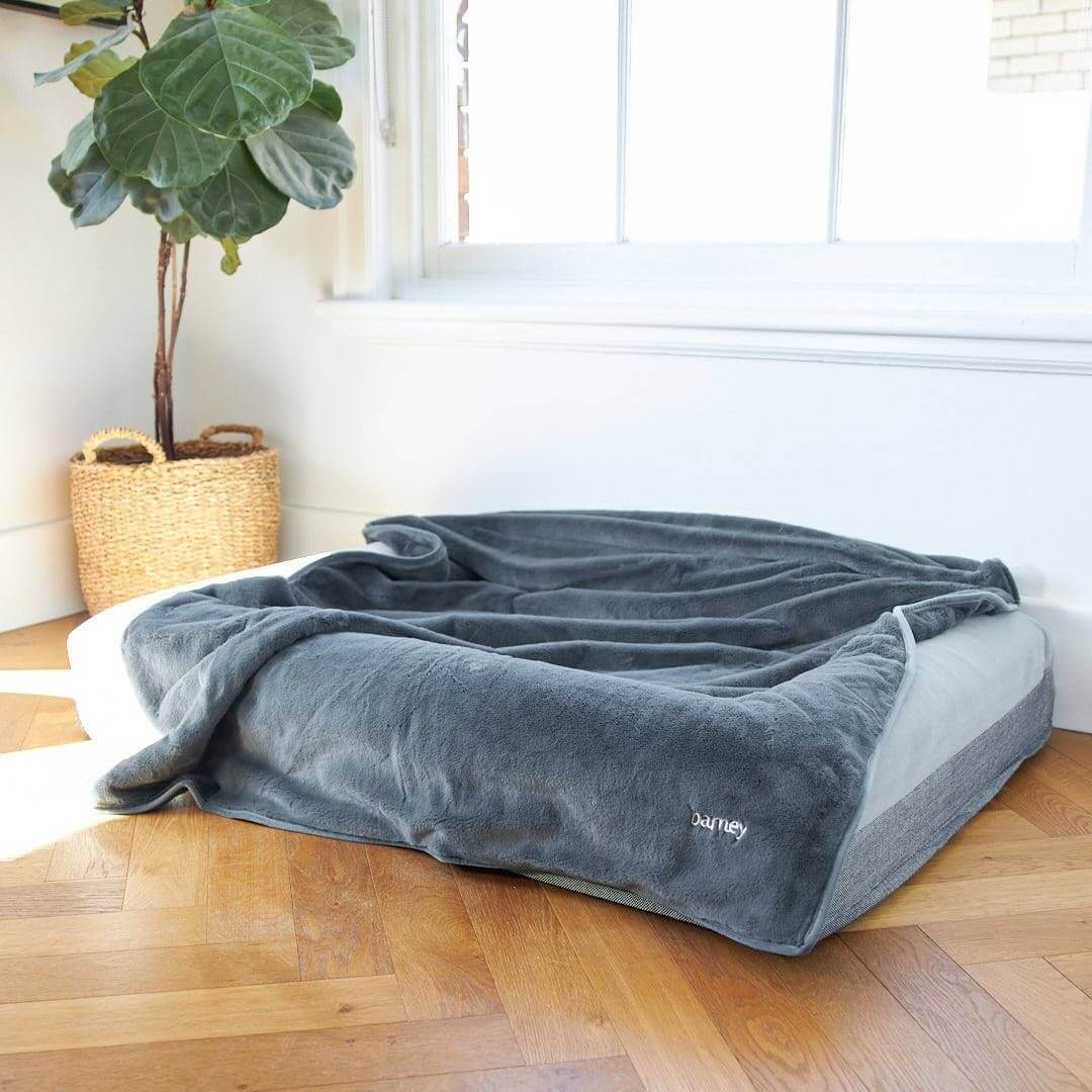 Just when you thought your dog was already spending too much time in the Barney Bed, we've given your dog another reason to stay in bed with the Barney Blanket. Designed to cushion and keep your dog warm, while also providing that 'den' feel to help your dog feel less anxious when you're not around. Use it to lay in your dog's Barney Bed for a plush feel or to cover your dog in the bed.