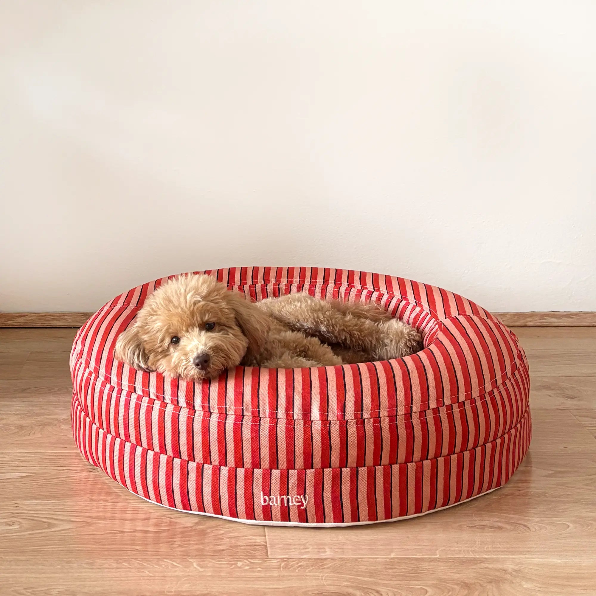Introducing our Linen Stripe Collection in Rhubarb and Lemongrass (coming soon!), an elevated take on everyday comfort for your dog’s Barney Bed. Crafted from 100% natural flax linen, these covers are soft and breathable, making them ideal for summer comfort. Crafted from 100% natural flax linen, these covers are soft, breathable and ideal for summer comfort. Designed with a fitted look for your BarneyCurl Bed, each cover features our premium YKK zips, making it easy to remove and wash. The base is finished with our non-slip backing to help keep the bed in place. The tonal stripe design brings a playful look to your home, while the natural linen softens beautifully with every wash. Each cover is backed with a light polyester lining for added durability and tailored to perfectly fit your BarneyCurl Bed - just select the matching size. Please note, as linen is a natural fibre, it is more delicate than our other covers. If your dog tends to scratch their bed, we recommend choosing a different cover, as the natural linen is not suitable for scratching.