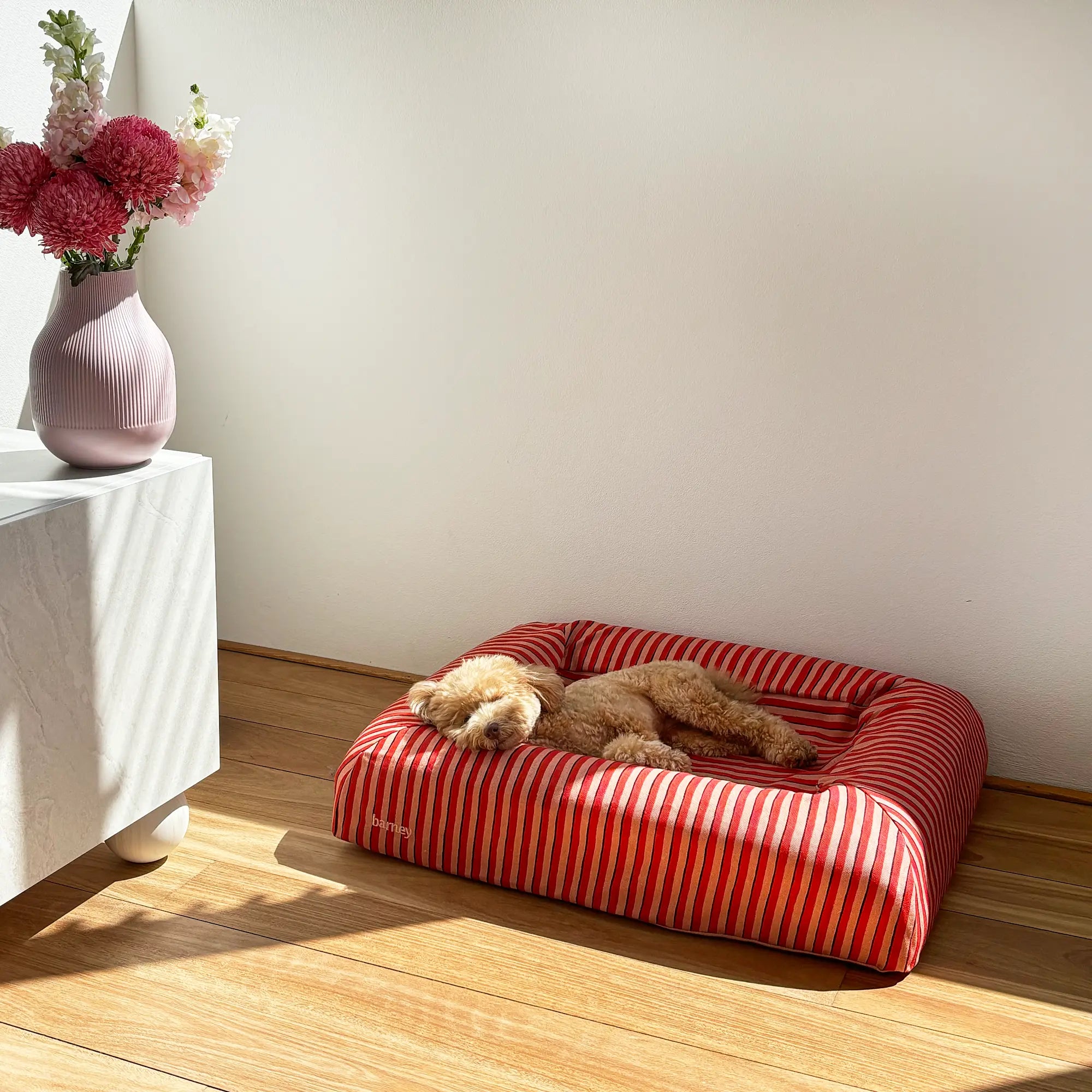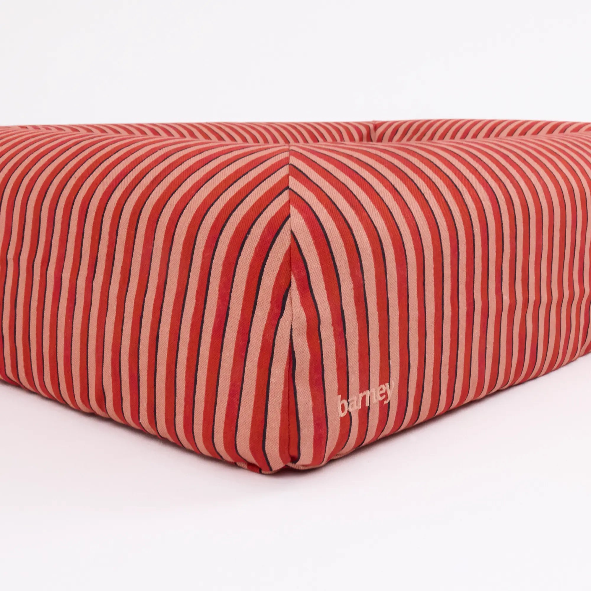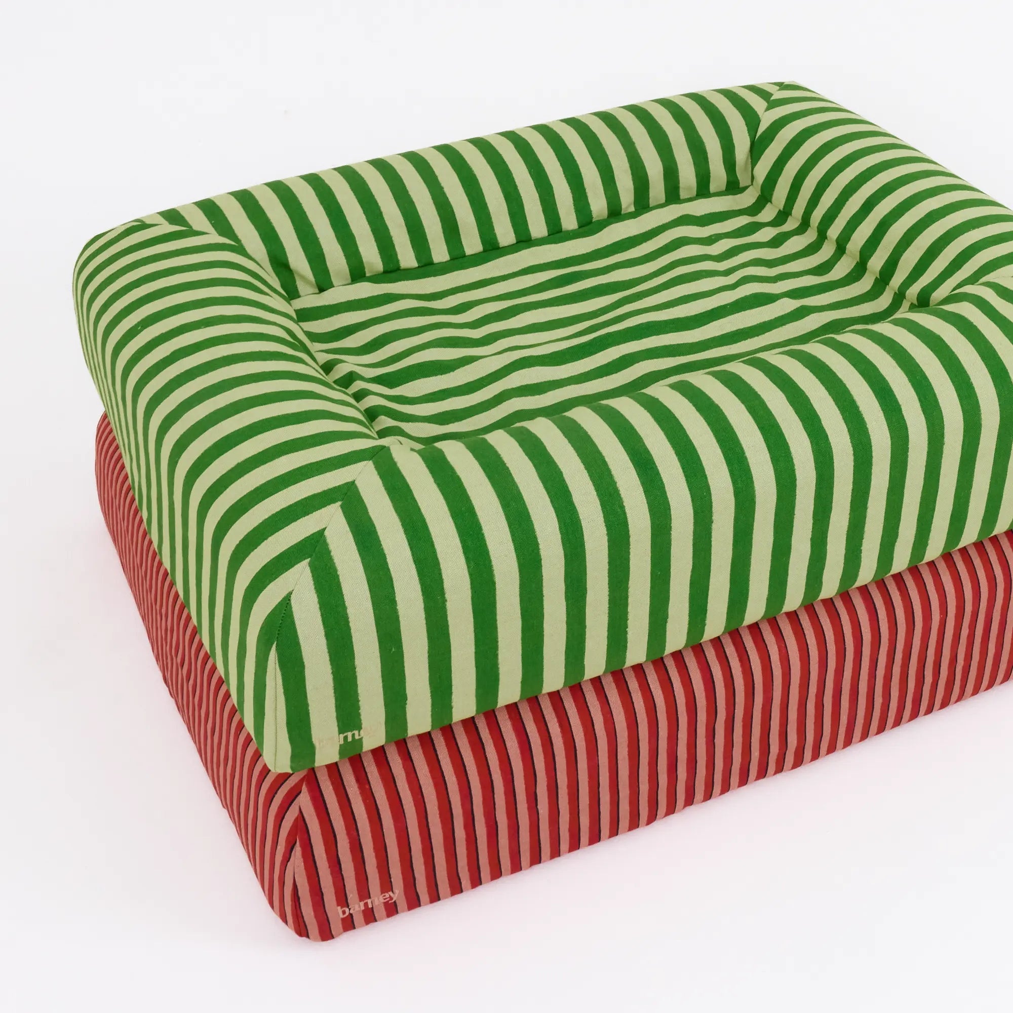 Introducing our Linen Stripe Collection in Rhubarb and Lemongrass, an elevated take on relaxed, everyday comfort for your dog’s Barney Bed. Crafted from 100% natural flax linen, these covers are soft and breathable, making them ideal for summer comfort. Designed with convenience at the forefront, the relaxed-fit cover simply slips on like a fitted sheet, thanks to the secure parachute elastic base. The tonal stripe design brings a playful look to your home, while the natural linen softens beautifully with every wash. Each cover is backed with a light polyester lining for added durability and tailored to perfectly fit your Barney Bed - just select the matching size. Please note, as linen is a natural fibre, it is more delicate than our other covers. If your dog tends to scratch their bed, we recommend choosing a different cover, as the natural linen is not suitable for scratching.
