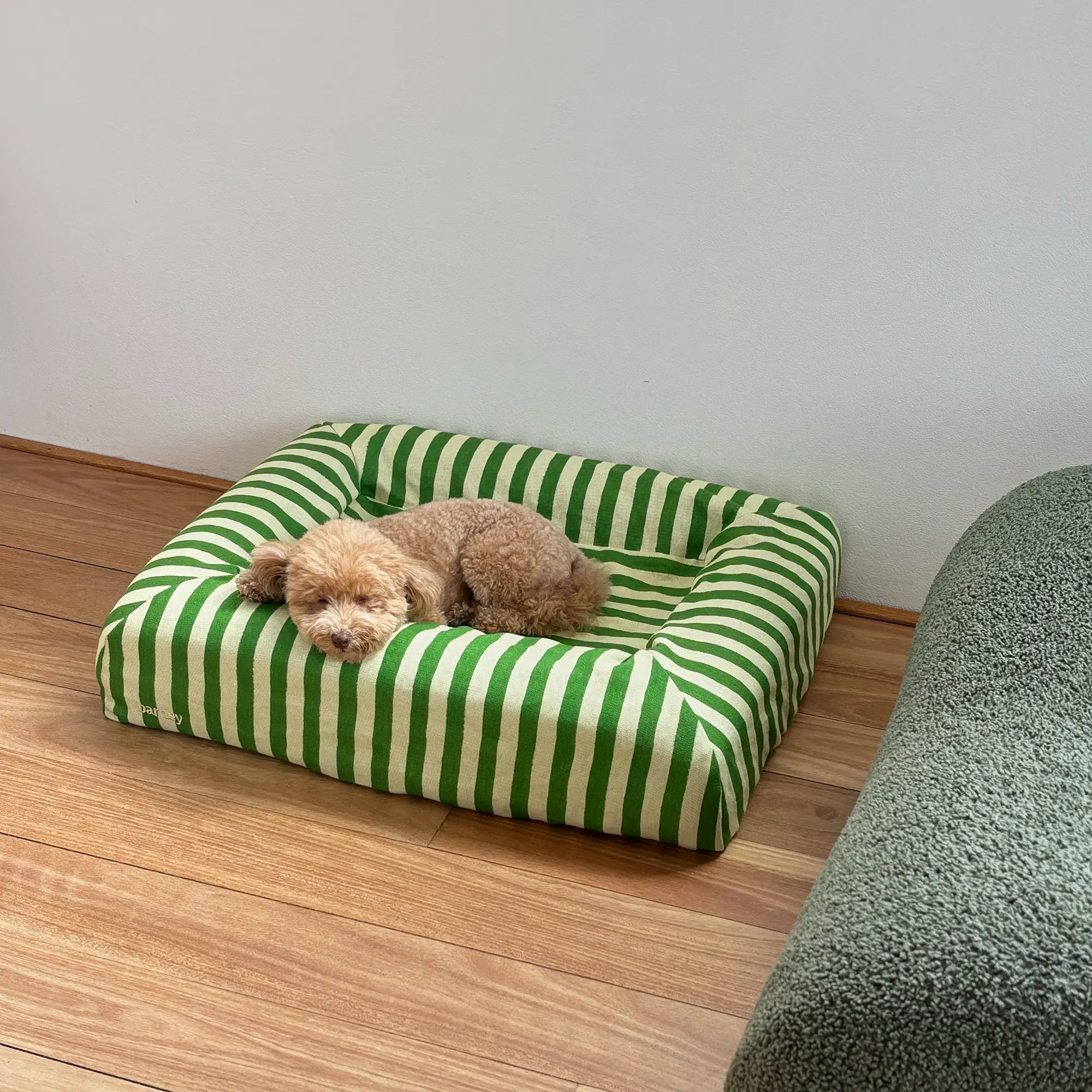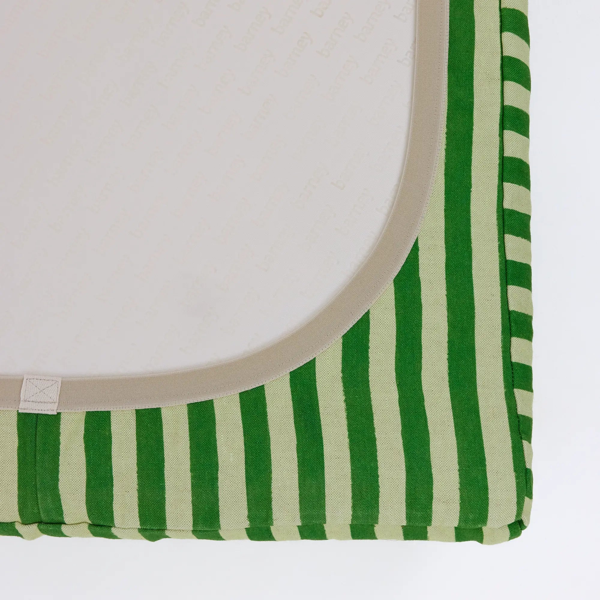 Introducing our Linen Stripe Collection in Rhubarb and Lemongrass, an elevated take on relaxed, everyday comfort for your dog’s Barney Bed. Crafted from 100% natural flax linen, these covers are soft and breathable, making them ideal for summer comfort. Designed with convenience at the forefront, the relaxed-fit cover simply slips on like a fitted sheet, thanks to the secure parachute elastic base. The tonal stripe design brings a playful look to your home, while the natural linen softens beautifully with every wash. Each cover is backed with a light polyester lining for added durability and tailored to perfectly fit your Barney Bed - just select the matching size. Please note, as linen is a natural fibre, it is more delicate than our other covers. If your dog tends to scratch their bed, we recommend choosing a different cover, as the natural linen is not suitable for scratching.