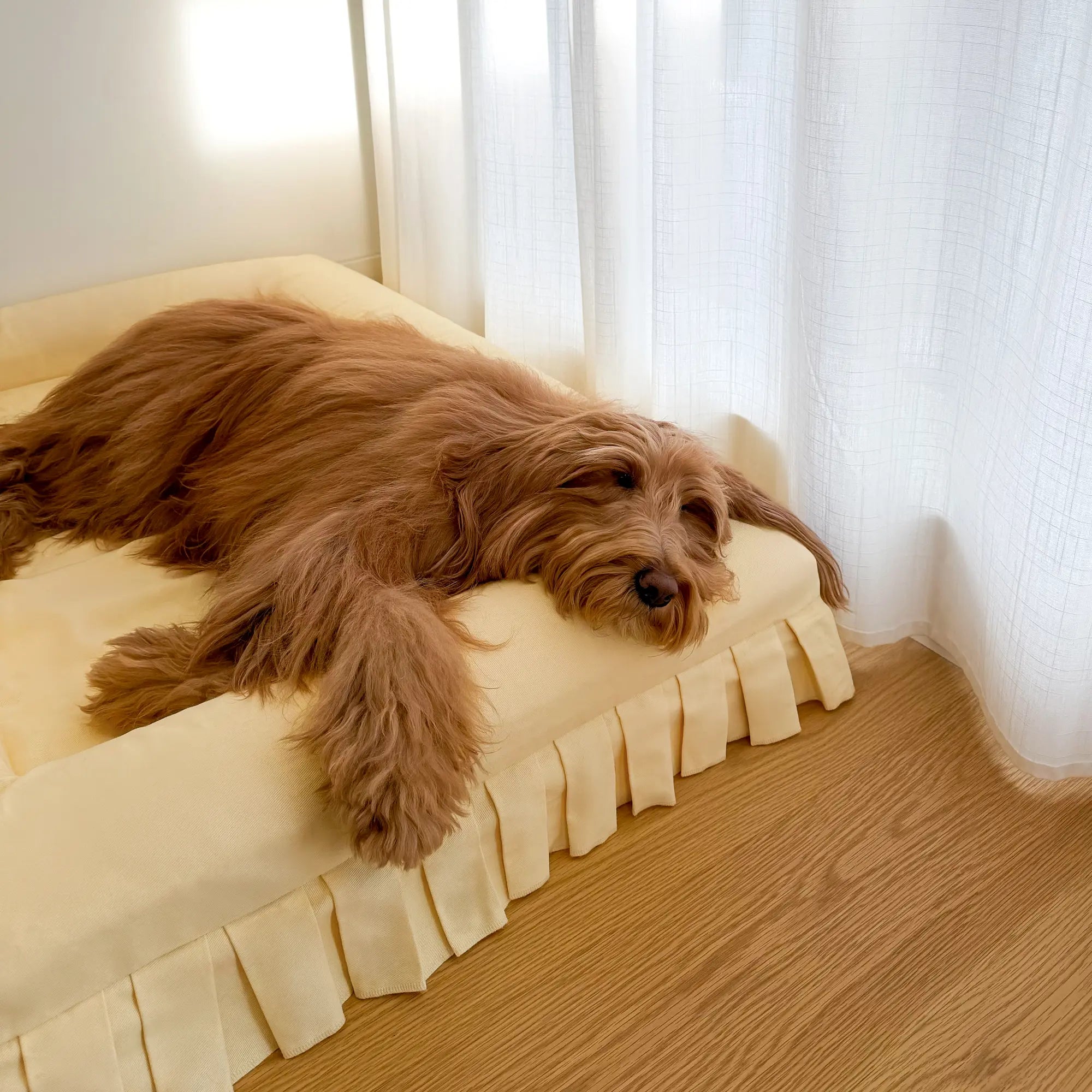 Made from 100% cotton twill and finished with a full box-pleated skirt, this bed cover captures the essence of old-world charm, reimagined for modern dog living. Because your dog’s bed should feel as comforting as your favorite childhood memory.