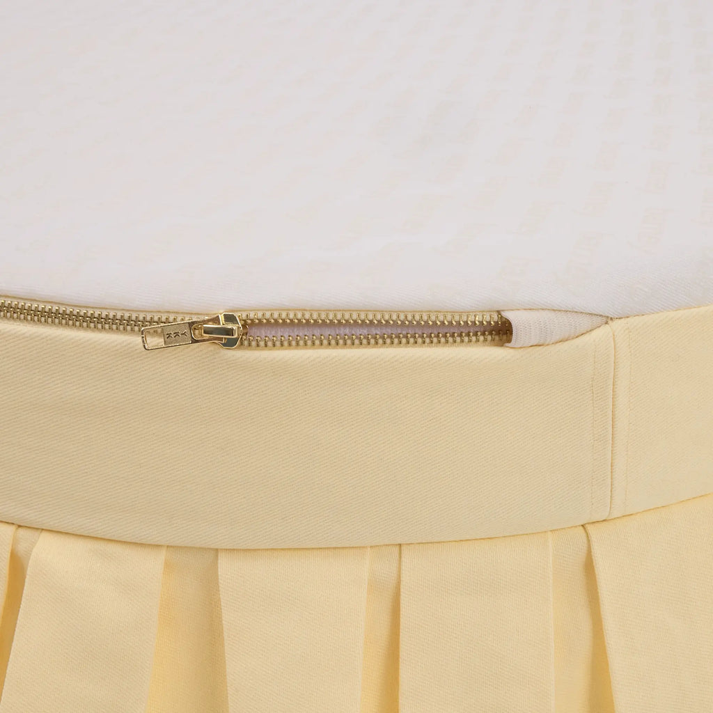 Our Zip Covers unzip like a dream with the YKK Zipper and are machine washable. To wash, simply unzip the cover and remove the foam inserts (don’t forget the chin rests!). Machine wash at 86°F with like colors to keep your cover looking fresh. Line dry to preserve the elegant pleats. Ironing is recommended if pleats become wrinkled. Do not use bleach or harsh chemicals. Do not tumble dry.